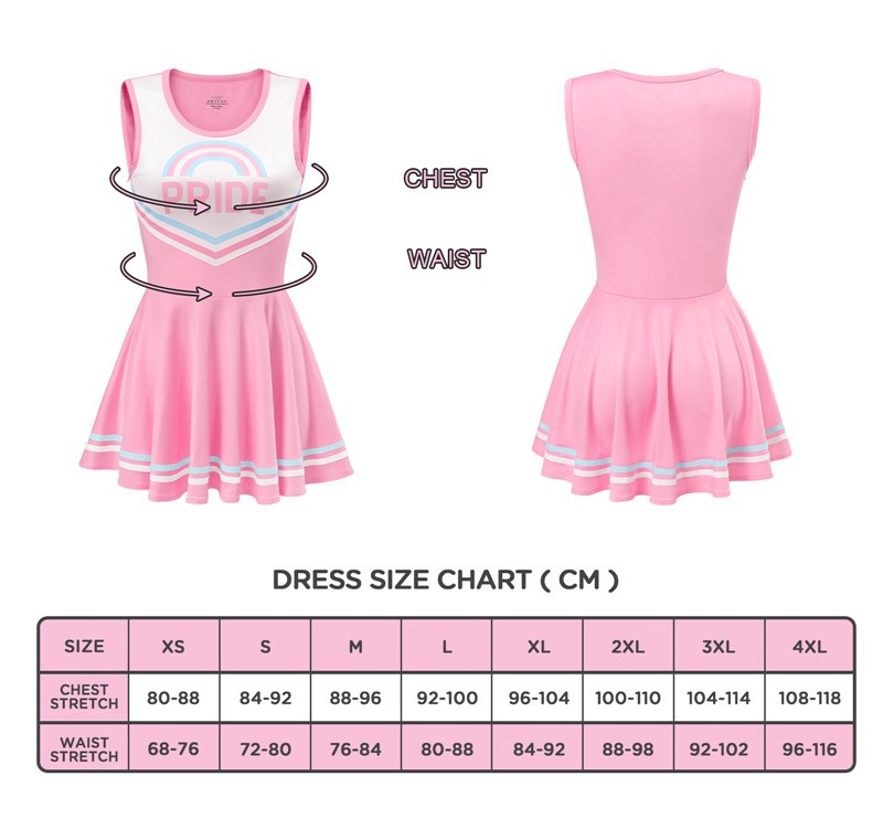Denne super fine rosa ermeløse kjolen er designet for å vise frem din dristige side. Den har et livlig rosa farge uttrykk utsmykket med "Pride"-bokstaver og sjarmerende striper. Uanstrengt å ta på – Med en usynlig sideglidelås er det en lek å skli inn i denne kjolen. Det puffede skjørtdesignet sikrer en komfortabel passform som på en vakker måte skjuler eventuelle uønskede kurver.